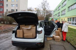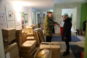 Auf den Fotos sieht man das Entladen von Fahrzeugen, das Sortieren von Hilfsgütern, Absprachen vor Ort, Bewegung von Raum zu Raum – jede und jeder weiß, was zu tun ist. Kartons mit Kleidung, Spielzeug und Materialien für Kinder und Familien sind hier kein Hintergrund, sondern Arbeitsumgebung. Hilfe wird nicht inszeniert – sie geschieht.